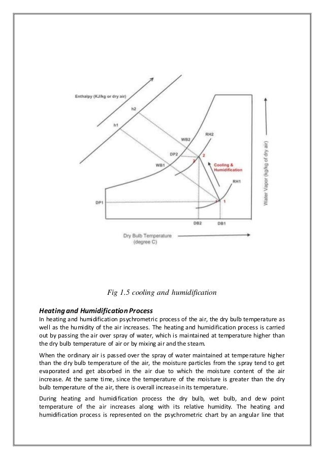 Cooling and Humidification Process. In this process the moisture is added to the air by passing it over the stream or spray of water which is at temperature lower than the dry bulb temperature of the air. The process in which the moisture or water vapor or the humidity is removed from the air keeping its dry bulb (DB) temperature constant is called as the dehumidification process. Like the pure humidification process, in actual practice the pure dehumidification process is not possible, since the dehumidification is always accompanied by cooling or heating of the air. This article describes.